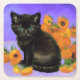 Van Gogh Black Kitten with Sunflowers Square Paper Coaster