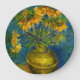 Clock featuring Vincent van Gogh’s oil paining Imperial Fritillaries in a Copper Vase (1887). Beautiful yellow flowers adorn a vase against a blue backdrop. A fabulous gift for fans of Post-Impressionism and Dutch art!