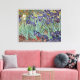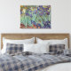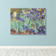 Vincent Van Gogh Irises at Saint Remy - Irises by Vincent Van Gogh is a wonderful impressionistic painting by one of the master impressionism artists of all time. The iris garden is swirling with colour and emotion, as the purple irises flow up from their blue green stems and leaves. There are some orange flowers in the background, in back of the purple irises. Greens, blues, purples, and oranges are vibrant in Van Gogh's masterpiece. Vincent van Gogh pained Irises in 1889. He painted the flowers in Southern France, during his first month in Saint-Rémy. He was encouraged to paint during his stay, and Van Gogh painted the iris gardens that were on the hospital grounds. He wrote to his brother Theo, "When you receive the canvases I have done in the garden, you will see I am not too melancholy here.