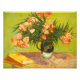 Van Gogh Oleanders print. Oil painting on canvas from 1888. Vincent Van Gogh stands as on of Western art’s great still life flower painters. Oleanders is one of Van Gogh’s most beautiful flower paintings, featuring a bouquet of oleanders in a small navy vase with bronze handle. The oleander blossoms are rich pink and their leaves a vibrant green. Beside the vase sit two books on the table adding a homey feel to the painting. A wonderful gift for fans of Van Gogh, post-impressionism, oleanders, famous flower paintings, and French art.