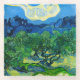 Glass Coaster featuring Vincent van Gogh’s oil painting Olive Trees in a Mountainous Landscape (1889). Green olive trees decorate a mountainside underneath a starry night sky. A marvellous gift for lovers of Post-Impressionism and Dutch art collectors!