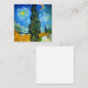 Enclosure Cards featuring Vincent van Gogh’s oil painting Road with Cypress and Star (1890), also known as Country Road in Provence by Night. People walk along a road passing a beautiful cypress tree underneath a blue night sky with yellow moon and stars. A fantastic gift for fans of Post-Impressionism and Dutch art.