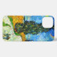 iPhone Case featuring Vincent van Gogh’s oil painting Road with Cypress and Star (1890), also known as Country Road in Provence by Night. People walk along a road passing a beautiful cypress tree underneath a blue night sky with yellow moon and stars. A fantastic gift for fans of Post-Impressionism and Dutch art.