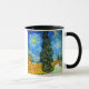 Coffee Mug featuring Vincent van Gogh’s oil painting Road with Cypress and Star (1890), also known as Country Road in Provence by Night. People walk along a road passing a beautiful cypress tree underneath a blue night sky with yellow moon and stars. A fantastic gift for fans of Post-Impressionism and Dutch art.