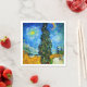 Napkins featuring Vincent van Gogh’s oil painting Road with Cypress and Star (1890), also known as Country Road in Provence by Night. People walk along a road passing a beautiful cypress tree underneath a blue night sky with yellow moon and stars. A fantastic gift for fans of Post-Impressionism and Dutch art.