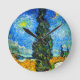 Clock featuring Vincent van Gogh’s oil painting Road with Cypress and Star (1890), also known as Country Road in Provence by Night. People walk along a road passing a beautiful cypress tree underneath a blue night sky with yellow moon and stars. A fantastic gift for fans of Post-Impressionism and Dutch art.