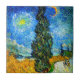 Ceramic Tile featuring Vincent van Gogh’s oil painting Road with Cypress and Star (1890), also known as Country Road in Provence by Night. People walk along a road passing a beautiful cypress tree underneath a blue night sky with yellow moon and stars. A fantastic gift for fans of Post-Impressionism and Dutch art.