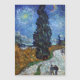 "Road With Cypresses" by Vincent Van Gogh is a wonderful impressionistic painting by one of the master artists of all time. The road is swirling with colour and emotion, as the green cypress trees wave to the swirling blue Sky with what looks like a star and a crescent moon. Painted in 1890 in Southern France in Saint-rémy-blanzy.