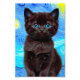 Photo Print featuring a black cat in Van Gogh’s painting Starry Night! This blue eyed kitten gazes adoringly from a background of blue swirls and a bright yellow moon. A fantastic gift for cat lovers and Dutch art collectors!