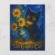 Van Gogh Starry Night Black Cat with Sunflowers Postcard