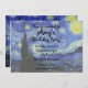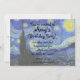 Birthday invitation template with van gogh's starry night with stars, moon, village in beautiful blue and yellow colours