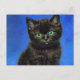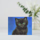 Postcard featuring a Van Gogh style black kitten. This fluffy kitty poses adorably for the viewer! A marvellous gift for cat lovers and Dutch art collectors!