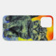 iPhone Case featuring a Van Gogh style cat. This black kitty relaxes on the blue waters of a beach. A sunset of red and yellow fills the sky. A wonderful gift for cat lovers and Dutch art collectors!