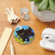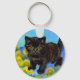 Keychain featuring a Van Gogh style cat with sunflowers! A pretty black kitten cutely poses with yellow flowers. A fabulous gift for cat lovers and Dutch art collectors!
