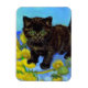 Magnet featuring a Van Gogh style cat with sunflowers! A pretty black kitten cutely poses with yellow flowers. A fabulous gift for cat lovers and Dutch art collectors!