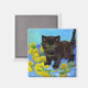 Magnet featuring a Van Gogh style cat with sunflowers! A pretty black kitten cutely poses with yellow flowers. A fabulous gift for cat lovers and Dutch art collectors!