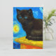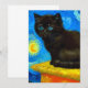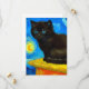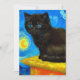 Card featuring a Van Gogh cat in the style of Starry Night! A fluffy black kitten perches on a table against a blue night sky and yellow moon. A purr-fect gift for cat lovers and Dutch art collectors!
