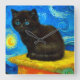 Van Gogh Style Starry Night Cat Square Wall Clock