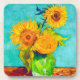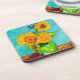 Coasters featuring Vincent van Gogh’s still life painting depicting a bouquet of sunflowers in a green vase. Part of his initial version in the Arles Sunflowers series. A great gift for fans of flower paintings, Post-Impressionism, and Dutch art.