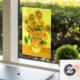 Window Cling featuring Vincent van Gogh’s oil painting Vase with Fifteen Sunflowers (1888). The art depicts a still life of fifteen beautiful sunflowers in a vase. A great gift for fans of Post-Impressionism and Dutch art.