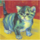 Sticker featuring a tabby cat in the style of Van Gogh! This sweet kitty adorably poses on a wooden floor against red walls and a window. An awesome gift for cat lovers and Dutch art collectors!