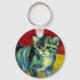 Keychain featuring a tabby cat in the style of Van Gogh! This sweet kitty adorably poses on a wooden floor against red walls and a window. An awesome gift for cat lovers and Dutch art collectors!