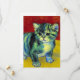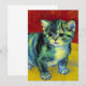 Card featuring a tabby cat in the style of Van Gogh! This sweet kitty adorably poses on a wooden floor against red walls and a window. An awesome gift for cat lovers and Dutch art collectors!