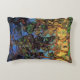 The cushion is small to medium sized. It can be washed. It is well constructed. The material used is pleasant and feels decent quality. It has a very slight plush feel which is good. It is well labelled and its care clearly stated. Theres nothing not to like about it. All in all a good item. The deduction of one star overall is due to long delays in delivery to the UK. It's not clear if this was due to Zazzle or somewhere else in the chain as I did not receive status updates of dispatch or progress. I cannot comment anymore on that other than to say that was our experience but it may not be the same for you. The printing was surprisingly close to what we were expecting. Its an art piece and on material so its hard to assess the precision of printing but it seems close to the original. The soft lines are reproductions of the original. The colour is a fair reflection of the painting. This was printed in the US and it looks like US quality. No issues.