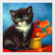 Window Cling featuring a beautiful Van Gogh tuxedo cat! This little kitty poses next to a basket of orange flowers upon a red table. A great gift for cat lovers and Dutch art collectors!