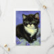 Card featuring a tuxedo kitten in the style of Vincent van Gogh! This pretty kitty poses with purple flowers. A superb gift for cat lovers and Dutch art collectors!