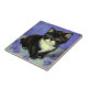 Tile featuring a tuxedo kitten in the style of Vincent van Gogh! This pretty kitty poses with purple flowers. A superb gift for cat lovers and Dutch art collectors!