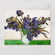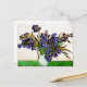 Van Gogh Vase of Irises postcard. Oil painting on canvas from 1890. One of Van Gogh’s lovely vase and flower paintings capturing the heavy purples of freshly cut irises. Like Van Gogh’s still life paintings of sunflowers and poppies, Irises in a Vase captures a certain summer heaviness that add life and vibrance to the iris blossoms. A great gift for fans of Van Gogh, Irises, post-impressionism, and famous flower paintings.