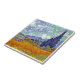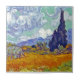 Vincent Van Gogh's Wheatfield With Cypresses. Oil on canvas from 1889 shows a golden field of wheat, a tall cypress tree, olive trees and the Les Alpilles mountains as seen from Van Gogh's window at the asylum at Saint-Remy. Keywords: Cypress, Tree, Cornfield, Landscape, Painting
