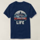 I give wanted to give this a 4 instead of a 5 because these Basic DARK T0shirts run unexpectedly SLIM or Narrow. Which is great if you do not have a potbelly, but I have a paunch. It isn't the shirt's fault that I've got a beer belly. The design and shirt itself is a quality cotton shirt. The color is more of a deep purple, but still a very pretty color. The Basic DARK T-shirts run a bit SLIMMER than the Basic Ts. The neck is a fraction narrower (or seems to be narrower) also. I'm a paunchy middle-aged woman and my neck is 12 inches (31cm) thick and the neckline fell about the same as in the photo of the man, and I had the desire to tug it a bit. So if you're a thick necked man or like loose shirts, be aware these are slimmer shirts. Once I get rid of my lockdown paunch it'll look great. The shirt washed well in cold water with no apparent bleeding. We don't have a dryer, so it hung dry. Did not shrink. Love the colors and the design. The design looks smaller on my shirt than it does on the model on-line. But still, it looks good on the shirt. The printing looks as it does on the model, just the size seems fractionally smaller. Washed garment in cold water, hung dry and design appeared unaffected.