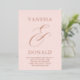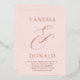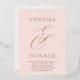 Modern wedding save the date card featuring a simple and minimal layout with your names and an elegant ampersand in a large format above your event details. All design elements on the front are in real foil over a blush pink background. The background colour may be changed in the design editing tool.
