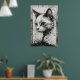 A modern design that blends the elegance and mystery of felines with bold lines and a contemporary palette.