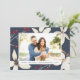 Send New Year greetings to friends and family in chic style with our elegant photo cards. Your photo is bordered in white, on a smoky navy blue background adorned with creamy vanilla flowers and red berries. Personalise with your custom greeting (shown with "Happy New Year") and your family name or individual names.