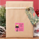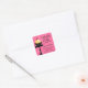 © 2015 Socialite Designs. A whimsical cupcake bakery box seal with a delicious cupcake and cherry on a stand. The background has a pink bubble pattern.