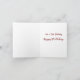 This card is great fun and good quality. I loved the humour inside and on the back. There is the opportunity to change the orientation of this card from landscape to portrait, which I did. It is relatively straightforward to amend the typeface to fit the new orientation. It was well packaged with no plastic. The printing on this card is excellent.