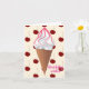 A fun, cute and girly Birthday Card that an ice cream lover will enjoy. On the cover, a vanilla ice cream cone is set against a background pattern of cherries, with the words "Birthday wishes" in pink. The inside text is in a dark brown colour.