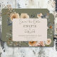 Celebrate your love story with a touch of whimsical charm! Our enchanting wedding save the date card features a delicate frame of soft vanilla white watercolor roses, nestled amongst vibrant brown, teal, and rust foliage. The blooms dance across a beautiful sage green background, creating a design as unique and joyful as your love. Playful fonts complete the design, perfectly capturing the lighthearted spirit of your celebration. The text area itself is a soft vanilla cream, ensuring your wedding details stand out beautifully. This captivating suite is perfect for the couple seeking a touch of whimsy and romance. Created by Simply Farmhouse Press.