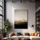 An ethereal urban landscape, enveloped in mist and golden light. Tall buildings dissolve into the distance, creating a sense of mystery and nostalgia. A work that evokes the beauty of impermanence and the power of time.