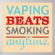 Typography design about vaping, featuring the motto "Vaping beats smoking anytime" written in vibrant green, red and grey. A superb message for the enjoyment -and the benefits- of quitting smoking via ecig.