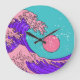 Vaporwave Great Wave: Stylised Ocean Art Large Clock