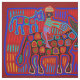 Vaquero y Caballos - Scarlet Red Blue Kuna Indian Fabric