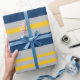 Variable Stripe Pattern Navy Blue Grey Yellow Wrapping Paper
