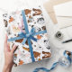 Cartoon like graphic, faces of various dog breeds, seamless repeat pattern