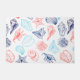 Line art graphic of various seashells, mollusc shells, conch shells, clam shells, sea urchins on white background | seamless repeat pattern