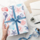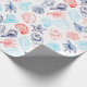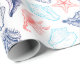 Various red blue seashells line art pattern wrapping paper