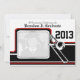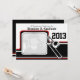Varsity Stripe with Trombone Graduation party invitation with photo accented in red. Customise for any college, university or high school graduation. Change text to fit your needs. Add information to back of invitation too.